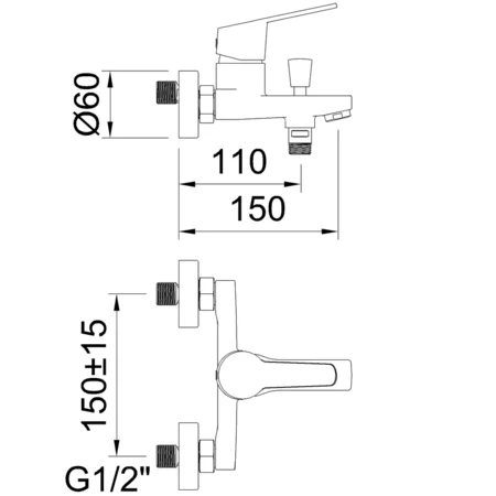 Grifo de baño-ducha monomando 1 Función Panam Evo Xtreme, elegante, simple y pequeño que se adapta a cualquier necesidad, diseño y mobiliario.